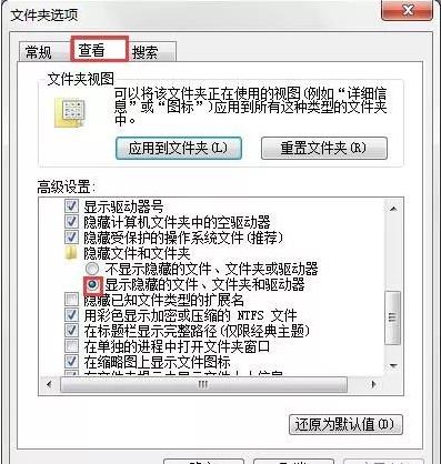 3.选择“显示隐藏的文件、文件夹和驱动器”。